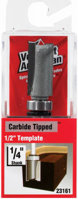 1/2" Template Trim Router Bit, 1/2" x 1", Straight Template Trim, 1/4 Shank. vendor ID: 23093 Price/Unit: 5.99EA model: 23161