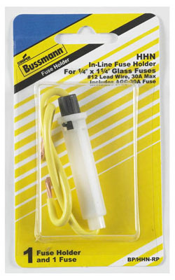 32V, 30A, 1/4" x 1-1/4", Auto Fuse Holder, #12 Leadwire, Nylon Heavy Duty Holder For The Agc-30 Fuse, Dimensions: 0.88"L x 2.75"W x 4.75"H. vendor ID: 17228 Price/Unit: 3.19EA model: BP-HHN-RP