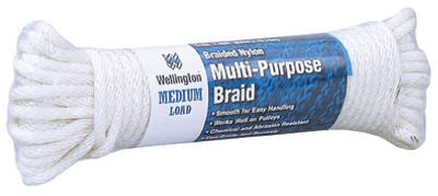 1/4" x 50' , Silvery White, Solid Braided Nylon Cord, Load Limit 75 LB, Hank. vendor ID: 81729 Price/Unit: 8.99EA model: 10115