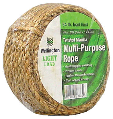 1/4" x 50', Natural Fiber, Twisted Manila Rope, Load Limit 54 LB, Mini Coil. vendor ID: 81729 Price/Unit: 6.79EA model: 28764