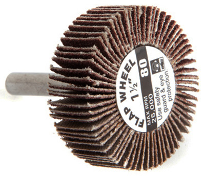 1.5", 80 Grit, Mounted Flap Wheel, 1/4" Shank, 1.5" x 1", Featuring Durable High Grade Aluminum Oxide Coating For Aggressive Cleaning & Refinishing On Most Wood Or Metal Surfaces, Ideal For Mounting On Power Drills Or Other Chuck Driven Machines. vendor ID: 13649 Price/Unit: 4.99EA model: 60188