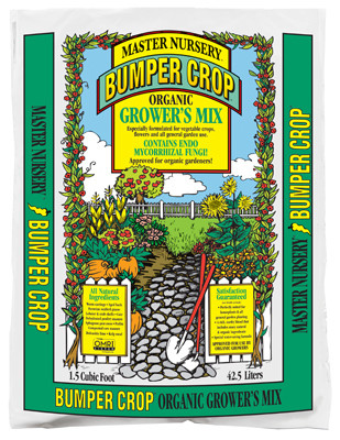 Master Nursery, 1.5 CUFT, Bumper Organic Growers Mix, Carefully Formulated Growing Medium Made With All Natural Ingredients Including Our Exceptional Composts, Result Is A Soil Designed To Provide Container Plants An Ideal Balance Between Water Retention, Soil Texture, Drainage & Aeration, Ingredients Include Mycorrhizal Fungi Which Form Symbiotic Relationships With Plant Roots Allowing The Uptake Of More Nutrients From The Soil & Increase Plant Tolerance To Environmental Stress & Play A Role In Soil Aggregation & Stimulation Of Microbial Activity, Depending On The Plant Species, Growing Practices & Conditions, Benefits To Plants Can Include Increased Uptake Of Phosphorous, Other Key Ingredients Include Worm Castings, Lobster & Crab Shell, Kelp Meal, Dehydrated Poultry Manure, Peruvian Seabird Guano, Sphagnum Peat Moss, Composted Cow Manure, Aged Bark, Dolomitic Lime & Coir. vendor ID: 2590 Price/Unit: 19.99EA model: MBG15