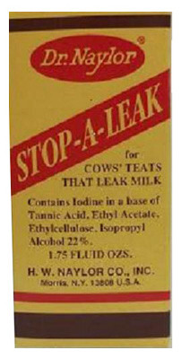 Dr. Naylors, 1.75 OZ, Cow Teat Leak Stop Treatment, For Cows Teats That Leak Milk, Helps To Constrict Sphincter Muscle So That Milk Will Be Retained From 1 Milking To The Next. vendor ID: 13755 Price/Unit: 8.49EA model: SAL