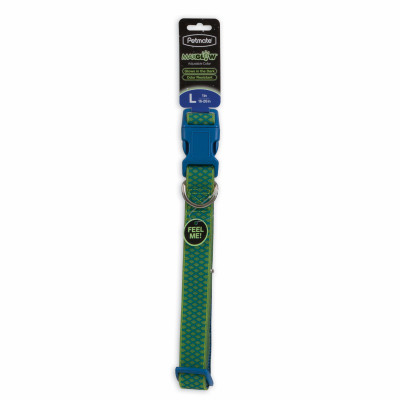1" x 16-26" Green, Grid Pattern, Glow In The Dark Collar, Easy Clean Rubber Overlay, Durable Webbing & Hardware In Complimentary Colors, Self Sustaining, Charges With Any Light Source. vendor ID: 43455 Price/Unit: 13.99EA model: 02372