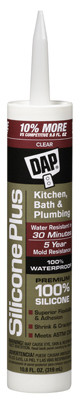 Silicone Plus, 10.1 OZ, Clear, Premium Silicone Rubber Kitchen & Bath Sealant, Formulated To Create A Long Lasting Watertight Seal With Superior Flexibility & Adhesion To A Variety Of Building Materials, When Cured, It Is Mold & Mildew Resistant & Will Not Crack Or Shrink, Unlike Acetoxy Silicone Sealants, Low In Odor Which Makes It Easier To Work With Especially When It Comes To Indoor Applications, Meets ASTM Specification C 920, Class 25, Type S, Grade NS Backed By A Lifetime Guarantee. vendor ID: 29520 Price/Unit: 5.99EA model: 08781