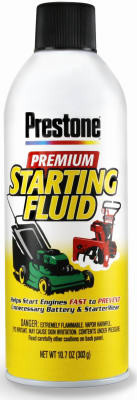 Prestone, 10.7 OZ, Aerosol Starting Fluid, Helps Start Stubborn Gasoline Engines In Any Kind Weather, DOT Hazardous Material Regulations Require Shipping Starting Fluid In Full Case Original Cartons. vendor ID: 8688 Price/Unit: 3.99EA model: AS237
