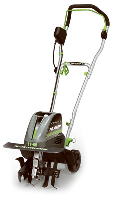 Earthwise, 10A, Electric Corded Tiller, 120V, 60 HZ, 10A Motor, 11" Working Width That Can Also Reduce Down To 7", Working Depth Of 8", Adjustable 2 Or 4 Tines, Easy Flip Up/Down Transport Wheels, Assembled Dimensions 42"H x 40"W. vendor ID: 48066 Price/Unit: 159.00EA model: TC70010