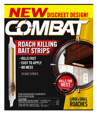 Combat, 10 Count, .68 OZ, Roach Killing Bait Strip, Adhesive Sticker For Placement Anywhere, 3 Easy Steps To Use, Break Apart, Peel Backing & Stick & Activate, Roaches Take The Bait Home To Kill The Nest. vendor ID: 3550 Price/Unit: 9.99EA model: 00973