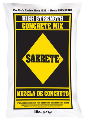 10 LB, Sakrete Concrete Mix, Quality Mixture Of Sand, Gravel & Portland Cement Which Exceeds 4,000 PSI When Used As Directed, For Repair & Building Jobs, Where Concrete Thickness Exceeds 2", Ideal For Placing Footings, Setting Posts & Poles, & Building Walkways, Driveways, Patios & Steps, Exceeds ASTM Spec C 387. vendor ID: 7451 Price/Unit: 5.59EA model: 65200404