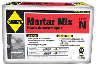 10 LB, Sakrete Mortar Mix, A Quality Mixture Of Sand & Cement. For Laying Brick, Block & Stone, For Building Or Repairing Chimneys, Walls, Planters & Outdoor Grills, For Tuck Pointing Mortar Joints, Exceeds ASTM Spec C 387, Complies With ASTM Spec C 270 For Type N Mortar. vendor ID: 7451 Price/Unit: 5.99EA model: 62300381-RDC09