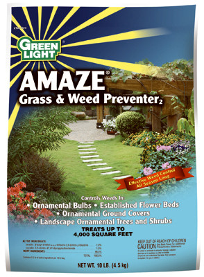 Green Light, 10 LB, Amaze Grass & Weed Preventer, Selective Pre-Emergent Herbicide For Season Long Control Of Listed Annual Grasses & Broadleaf Weeds, Controls Listed Grassy & Broadleaf Weeds, Easy To Apply Granule, Can Be Applied Over The Top Of Foliage, Active Ingredient: 1.0% Benefin, 1.0% Oryzalin. vendor ID: 6130 Price/Unit: 21.99EA model: 0420110