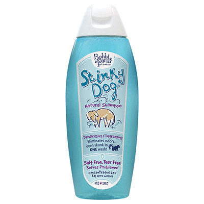 Bobbi Panter, 10 OZ, Stinky Dog Shampoo, A Natural Vegetable Protein Deodorizer Removes Odors, Even Skunk, & Degreases While Leaving Fur Shiny & Soft, Clean & Crisp Fragrance. vendor ID: 8103 Price/Unit: 11.99EA model: 00020