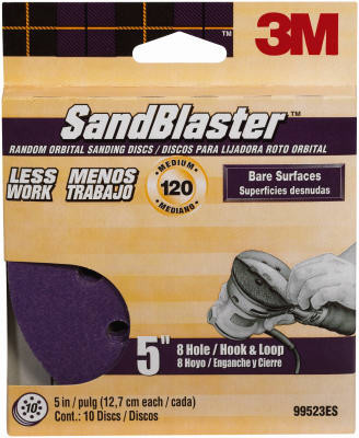 10 Pack, 5", 8-Hole, 120 Grit Sanding Disc, For 5" Random Orbital Sanders Only, Use Surfaces Including: Wood, Metal & Fiberglass, Will Not Discolor Your Sanding Surface, Backing Is Coated With Extremely Durable Cubitron Mineral, Stays Sharp, Resulting In A More Consistent Sanded Surface & Longer Disc Life, Cuts 3 Times Faster & Lasts 3 Times Longer, Resists Tearing, Clog Resistant For Less Work. vendor ID: 14670 Price/Unit: 9.99EA model: 99523ES