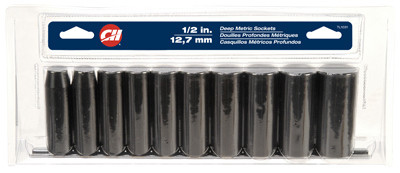 11 Piece, 1/2" Drive Deep Metric Socket Set, With Socket Rail, Includes 10, 12, 13, 15, 16, 17, 19, 21, 22 & 24 mm Sockets, vendor ID: 45070 Price/Unit: 34.99EA model: TL1031