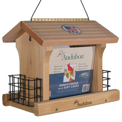 Audubon, 12", Large Cedar Ranch Bird Feeder, With 2 Suet Cages, Natural Cedar Feeder, Screen Bottom For Drainage, Easy To Fill & Clean, 5 LB Capacity. vendor ID: 60277 Price/Unit: 33.99EA model: NARANCH3