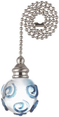 12", Nickel Beaded Pull Chain, Clear Orb With Blue Curly Cues. vendor ID: 17269 Price/Unit: 9.69EA model: 77621