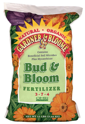 Gardner & Bloome, 12 LB, 3-7-4, Bud & Bloom Fertilizer, Ideal For All Blooming Plants, Inside & Outside, Made From 100% Natural & Organic Ingredients & High In Phosphorous To Promote Larger, Healthier Blooms, Feeds For Several Months, OMRI Listed. vendor ID: 7026 Price/Unit: 17.99EA model: 8653