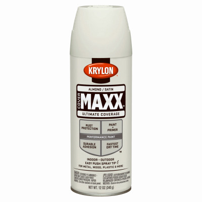COVERMAXX, 12 OZ, Almond, Satin, Brilliant Aerosol Paint, Clean Colors, Fastest Dry Time Under 10 Minutes, Paint & Primer Durable Adhesion, For Indoor & Outdoor Projects With Rust Protection, Can Be Used On Metal, Wood, Plastic, Wicker & More. vendor ID: 38190 Price/Unit: 4.49EA model: K09155000