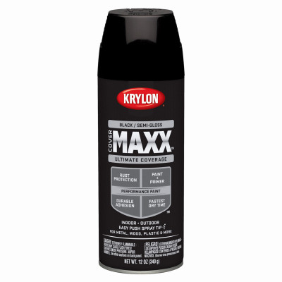 COVERMAXX, 12 OZ, Black, Semi-Gloss, Fastest Dry Time Under 10 Minutes, Paint & Primer, Durable Adhesion, For Indoor & Outdoor Projects With Rust Protection, Can Be Used On Metal, Wood, Plastic, Wicker & More. vendor ID: 38190 Price/Unit: 4.49EA model: K09180000
