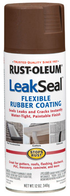 12 OZ, Brown, Leak Seal Spray, A Rubberized Protective Utility Coating Designed To Fill & Seal Leaks & Cracks, Provides A Water Tight, Flexible Seal That Prevents Moisture Penetration, Rust & Corrosion, Great For Gutters, Roofs, Flashing, Ductwork, PVC Drains, Masonry, Concrete & Much More. vendor ID: 38950 Price/Unit: 9.99EA model: 267976