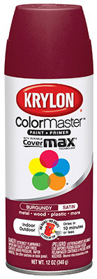 Colormaster, 12 OZ, Burgundy, Satin, Spray Enamel, Interior/Exterior, Fast Dry, Use On Wood Or Metal. vendor ID: 38190 Price/Unit: 4.19EA model: K05350302
