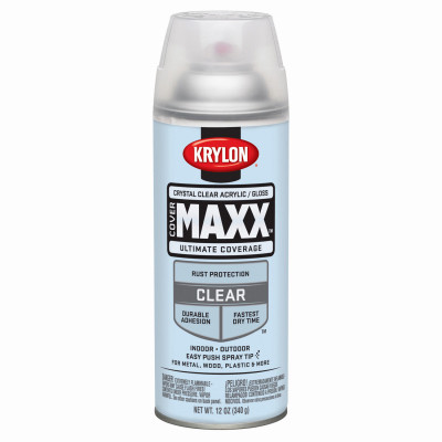 COVERMAXX, 12 OZ, Crystal Clear Acrylic, Gloss Brilliant Aerosol Paint, Clean Colors, Fastest Dry Time Under 10 Minutes, Paint & Primer Durable Adhesion, For Indoor & Outdoor Projects With Rust Protection, Can Be Used On Metal, Wood, Plastic, Wicker & More. vendor ID: 38190 Price/Unit: 4.49EA model: K09116000