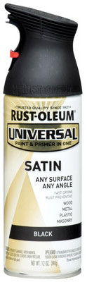 12 OZ, Universal Satin Black, Universal 1 Coat Coverage Spray Paint, For Superior Performance, All Major Surfaces Wood Metal Plastic Concrete Brick & More, Spray Anyway Design With Comfort Trigger Which Eliminates Finger Fatigue. vendor ID: 38950 Price/Unit: 6.99EA model: 245197