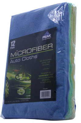 Peak, 12 Pack, Auto Cloth, Dry Faster Than Cotton Towels, Dries Lint Free, Combines Friction, Static Electricity & Capillary Effect To Lift, Hold & Remove Wax, Glaze, Polish & Other Surface Residues With Absolute Ease, Allows You To Clean, Dry, & Polish Your Vehicle With Ease, Non-Linting, Clear Coat Safe, Thousands Of Microfibers Trap Particles, Helping To Prevent Scratches To The Surface. vendor ID: 59154 Price/Unit: 14.99EA model: PKC0FY