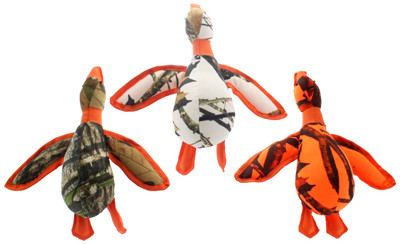 13", Mossy Oak Dazzle Duck Plush Filled Dog Toy, Each Toy Is Plush Filled & Has A Plastic Noisemaking Squeaker, Toys Are Covered Canvas Material & Ship In 3 Assorted Camouflage Colors: Orange, White & Green. vendor ID: 4335 Price/Unit: 8.99EA model: 54034