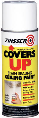 Covers Up, 13 OZ, Vertical Aerosol, Stain Killing Primer, Sealer & Finish, Stain Killer & Ceiling Touch Up Paint, Sprays Straight Up, Low Odor, Toned To Match Most Ceiling Tiles, Blocks Water, Nicotine & Smoke Stains, Can Be Used As A Stain Blocking Primer Or As Finish Coat. vendor ID: 51680 Price/Unit: 6.29EA model: 03688