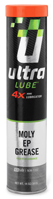 Ultra Lube, 14 OZ, Moly EP Grease, Multi Purpose Grease, Bio Based, 4 Times The Lubricity, Use In Grease Guns, Lubricates Moving Components Such As Ball Joints, Steering Linkages & U Joints On Automobiles, Lubricates Driveshafts & Other Moving Parts Where Metal Wears Against Metal On Agricultural & Recreational Equipment, Less Odor. vendor ID: 81158 Price/Unit: 5.99EA model: 10314