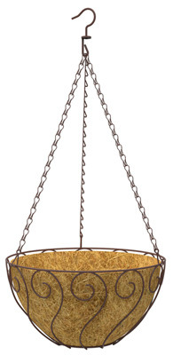 14", Rust, Aztec Style Round Hanging Basket, Powder Coated Steel Construction, Includes 14" Diameter, Coco Liner & Chain. vendor ID: 75184 Price/Unit: 9.99EA model: 87840