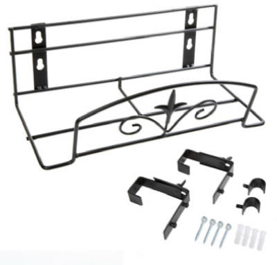 15", Black, Classic Finial Style, Flower Box Holder, Includes Universal Mounting Hardware, Powder Coated Steel. vendor ID: 75184 Price/Unit: 12.99EA model: 88515