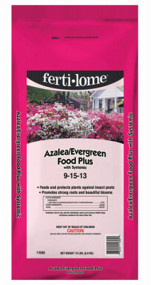 VPG Fertilome, 15 LB, Azalea/Evergreen Food Plus With Systemic, 9-15-13 With Trace Elements Plus Imidacloprid, Promotes Strong Roots & Beautiful Blooms, While Protecting The Plant Against Insect Damage For Up To 8 Weeks, Taken Up By The Roots & Travels Throughout The Entire Plant, Works Inside The Plant So Rain & Water Will Not Wash Off The Protection. vendor ID: 5681 Price/Unit: 24.99EA model: 11695