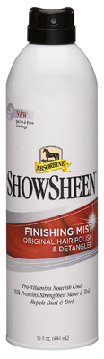 Showsheen, 15 OZ, Finishing Mist, Perfect For Last Minute Touch Ups, Has Continuous, Quiet Sprayer, Won't Spook Horse, Even Sprays Upside Down. vendor ID: 6173 Price/Unit: 12.99EA model: 440950
