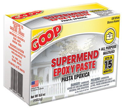 16 OZ, Super Mend Epoxy Paste, 2 Part Household Repair & Filler, Sets In 15 Minutes, Bonds To Glass, Ceramics, Tile, Wood, Metals & Many More Surfaces, Many More Uses Than Syringe Epoxies, Waterproof, Resistant To Grease, Detergents, Oil & Fuel, 1:1 Mix. vendor ID: 29959 Price/Unit: 23.99EA model: 5330061