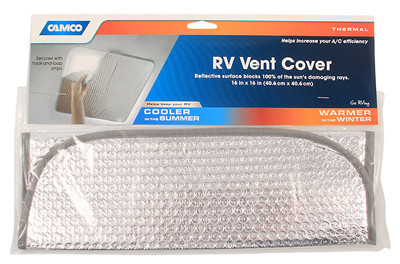 16" x 16", Reflective Vent Cover, Blocks 100 Percent Of The Sun's Damaging Rays, Helps To Keep The RV Cool In Summer & Warm In Winter, Mounts Securely With Included Hook & Loop Fasteners, Long Lasting & Durable, Easy To Use & Store. vendor ID: 35188 Price/Unit: 6.99EA model: 45191