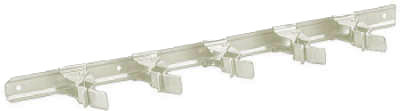 17", White Spring Grip Organizer Bar, Grips Slide On Bar To Desired Position Or Maximum Use, Grips Securely To Store Brooms, Tools, Rakes, Shovels & Much More, Made Of Zinc Plated Steel & Guaranteed To Never Lose Tension, Level Organizer & Screw Into Wall, To Insert Or Remove An Item Press The Surface Marked Push, Dimensions: 14" L x 5" W x 20.5" L, Carded. vendor ID: 641 Price/Unit: 8.49EA model: SG5W
