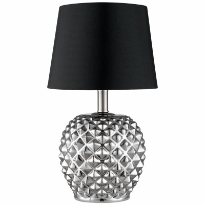 18.75", Table Lamp, With Chrome Studded Base, Round Black Fabric Shade, Uses One A19 LED Bulb, Included, 60W Equivalent. vendor ID: 3900 Price/Unit: 64.99EA model: 12911