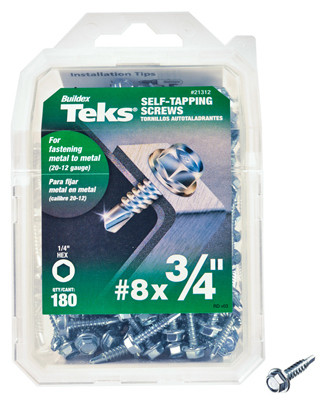 Teks, 180 Pack, #8 x 3/4", Self Tapping Hex Washer Head Drill Point Screw. vendor ID: 3704 Price/Unit: 5.99EA model: 21312
