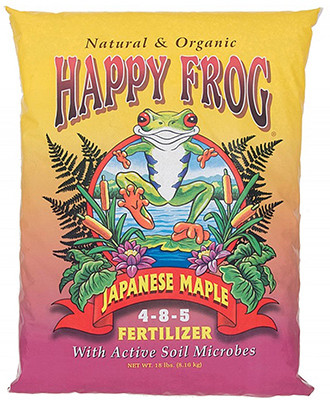 Foxfarm, 18 LB, Happy Frog, Japanese Maple Fertilizer, Blended For The Unique Needs Of The Japanese Maple, Uses A Lower Nitrogen Formula That Supports A Natural Tendency To Grow In Cool Weather Environments Which Results In Less Leaf Scorch In Summer, Even In Sun, Smooth Transition To Dazzling Fall Color, Lower pH Helps The Roots Take Up The Nutrients They Need, & Phosphorous & Potassium Deliver Color Illumination, Contains Premium Organic Ingredients Like Bat Guano, Cottonseed Meal, Feather Meal, & Humic Acid, A Naturally Occurring Organic Material That Is Formed When Organic Matter Decomposes. vendor ID: 75077 Price/Unit: 45.49EA model: FX14074
