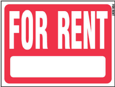 18" x 24", Heavy Gauge Plastic For Rent Sign, Red Background, White Letters, Double Sided, Pre-Drilled For Easy Mounting. vendor ID: 49601 Price/Unit: 9.99EA model: RS-603