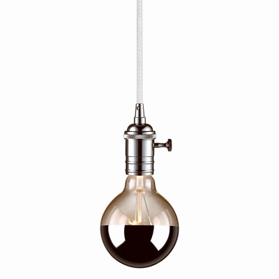 1 Light, Plug In Pendant, Chrome Finish, Rotary Switch On Socket, 15' White Cloth Cord, Plug In, Uses 1 A19 60W Medium Base Bulb, Not Included, Mounting Hardware Included, Adjustable Height Up To 15', Culus Certified. vendor ID: 3900 Price/Unit: 24.99EA model: 65442