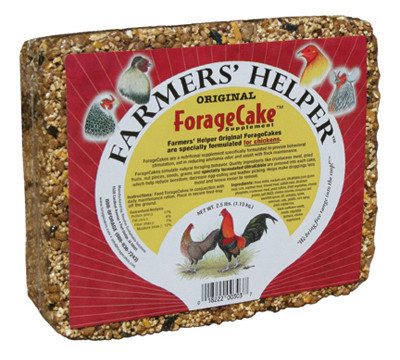 Farmers Helper, 2.5 LB, Original ForageCake, Nutritional Supplement Specifically Formatted For Chickens To Provide Behavioral Stimulation, Aid In Reducing Ammonia Odor, & Assist With Flock Maintenance, Ingredients Like Seeds, Nuts, Fruits, & Grains Are Pressed Into A Solid Block To Help Birds Experience Less Boredom, Help Decrease Feather Picking, & Help Promote Muscle Tone & Strength, Allergen Statement: Product May Contain 1 Or All Of The Following Allergens: Peanuts, Milk, Tree Nuts & Shellfish. vendor ID: 41483 Price/Unit: 9.99EA model: 06303
