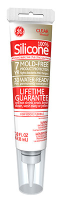 Silicone II, 2.8 OZ, Clear, Kitchen & Bath Caulk,100% Silicone, Mildew Resistant, Adheres To Glass, Tile, Ceramic & Porcelain, Laminate, Metal, Plastic, Granite & Wood, Ideal For Sealing Around Tubs, Showers & Sinks, Waterproof & Permanently Flexible, Low Odor, For Interior Use.30 Minute Water Ready, 7 Year Mold Free Product Protection, Lifetime Guarantee, Non Paintable. vendor ID: 29926 Price/Unit: 4.99EA model: GE284