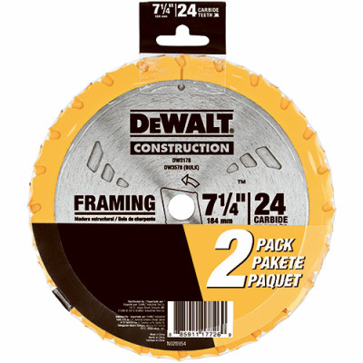 2 Pack, 7-1/4", 24 Tooth, Carbide Blade, Tougher Tungsten Carbide, Anti Stick Rim Reduces Friction & Gum Up, Thinner Kerf For Smoother Cuts. vendor ID: 22426 Price/Unit: 9.97EA model: DW3578D2