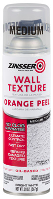Zinsser, 20 OZ, Orange Peel, Oil Based, Medium Pattern, Wall Texture Spray, Aerosol, Fast Drying, Provides A Quick & Easy Solution For Repairing Damaged, Textured Walls Or To Add A Decorative Finish To Liven Up A Room, Ready To Use, Just Shake The Can & Then Spray It On, Creates Professional Results Instantly, No Clog Guarantee. vendor ID: 51680 Price/Unit: 13.99EA model: 202131
