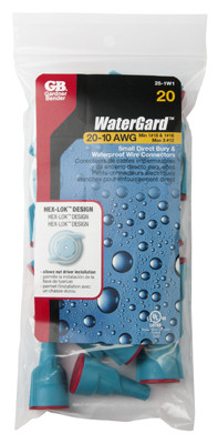 Watergard, 20 Pack, Blue/Black, 20-10 Awg, Wire Connector, Use In Damp/Wet Locations & Direct Bury Applications. vendor ID: 17467 Price/Unit: 14.99EA model: 25-1W1