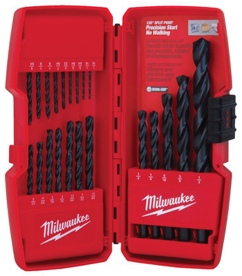 Thunderbolt, 21 Piece, Black Oxide Drill Bit Set, Convenience & Heavy Duty Performance On The Jobsite, Designed For Extreme Durability & Long Life, Thicker Core Than A Standard Drill Bit To Provide Ultimate Strength & Protect Against Side Load Breakage, Specially Designed Parabolic Flute Form Clears Chips Fast, While The 3 Flat Secure-Grip Shank Holds The Bit Firmly In The Drill Chuck, 135 Degree Split Point Tip Delivers A Precision Start & Prevents Walking For Fast, Accurate Holes, For Drilling On Curved Surfaces, Require Less Effort To Drill Through Metal, Wood & PVC & Are Highly Recommended For Use With Portable Drills, Resilient Case & Includes Bit Sizes (2) 1/16", (2) 5/64", 3/32", 7/64", (2) 1/8", 9/64", 5/32", 11/64", (2) 3/16", 13/64", 7/32", 15/64", (2) 1/4", 5/16", 3/8", & 1/2". vendor ID: 98327 Price/Unit: 24.99EA model: 48-89-2801
