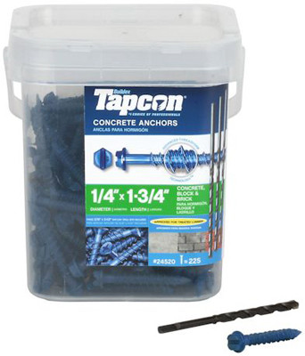 225 Pack, 1/4" x 1.75" Steel Hex Washer Head Tapcon Concrete Anchors. vendor ID: 3704 Price/Unit: 37.99EA model: 24520